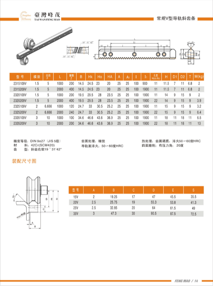 V型導(dǎo)軌斜齒條DIN9級(jí)